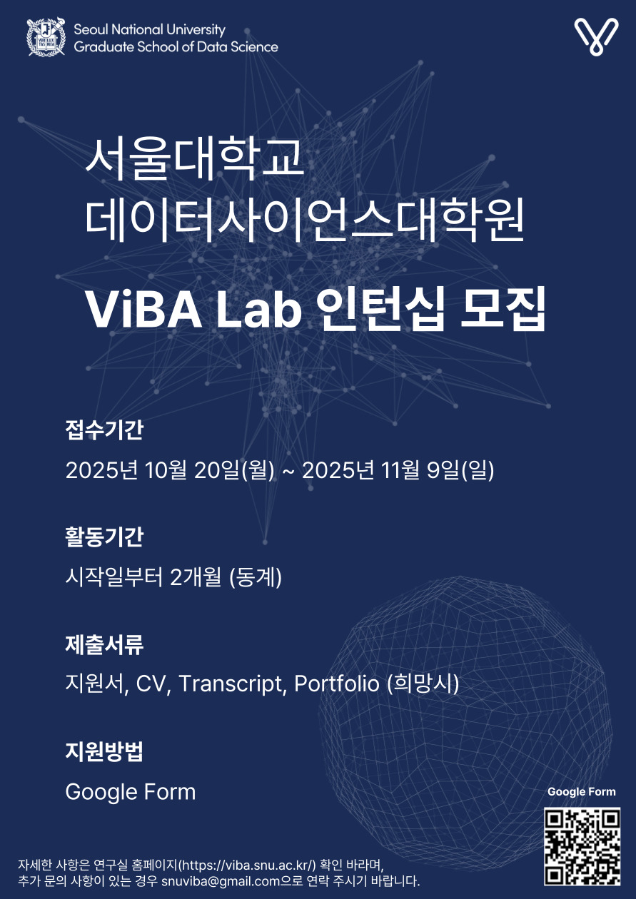 [마감] 2025년 겨울 서울대학교 데이터사이언스대학원 ViBA Lab 인턴십 모집 안내